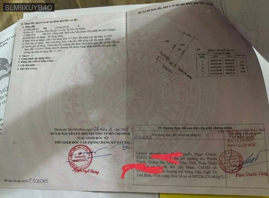 Bán đất Hoà Phú, Củ Chi ( Xã Bình Mỹ mới )