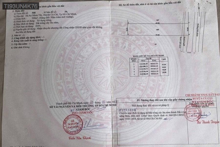 Bán đất mặt tiền đường Bến Đình, Xã An Nhơn Tây, Củ Chi