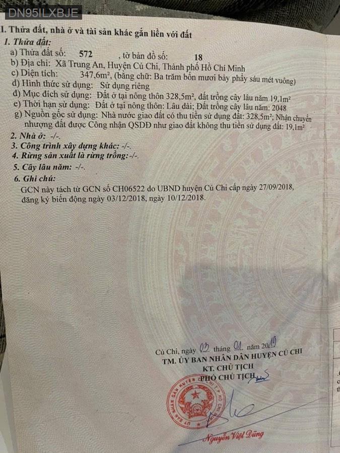 Bán đất mặt tiền đường nhựa Xã Trung An, Củ Chi