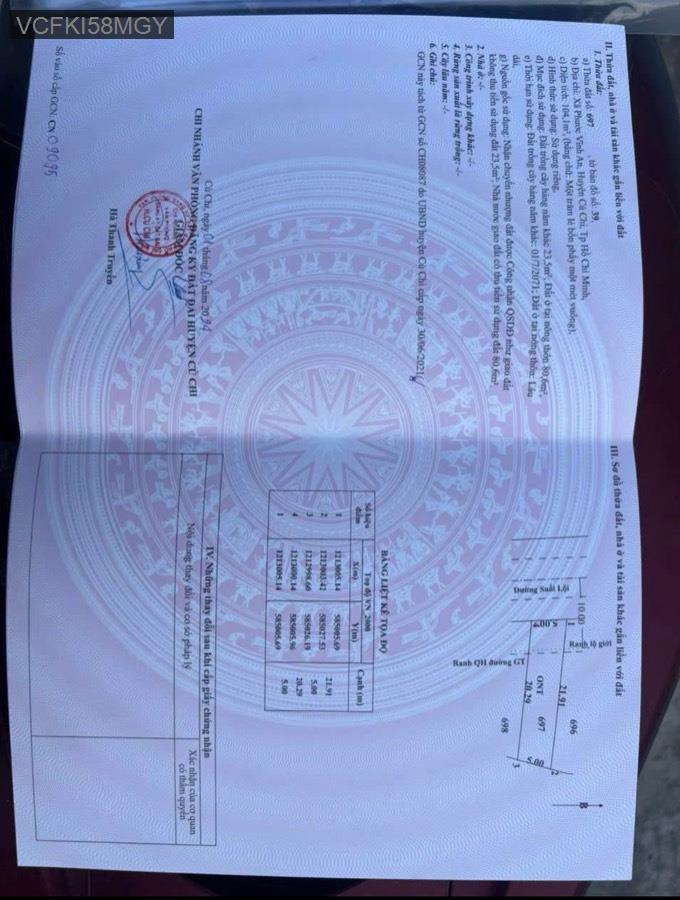 Bán đất mặt tiền Suối Lội, Xã Phước Vĩnh An, Củ Chi