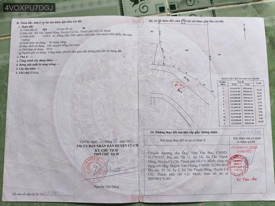 Bán đất vườn Xã Tân Thạnh Đông, Củ Chi