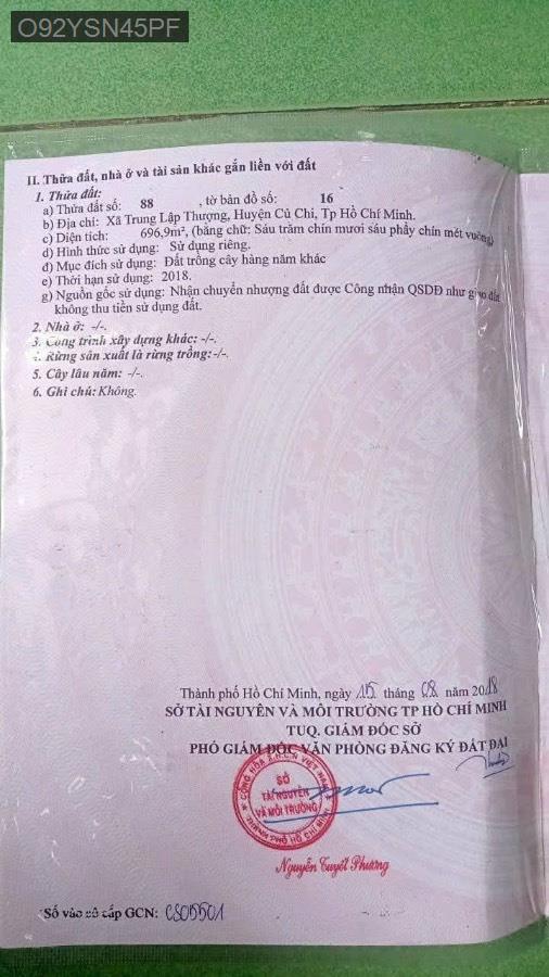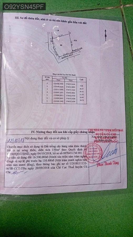Bán lô đất 2 mặt tiền đường gần Văn Phòng Ấp, Xã Trung Lập Thượng (Thái Mỹ mới), Củ Chi