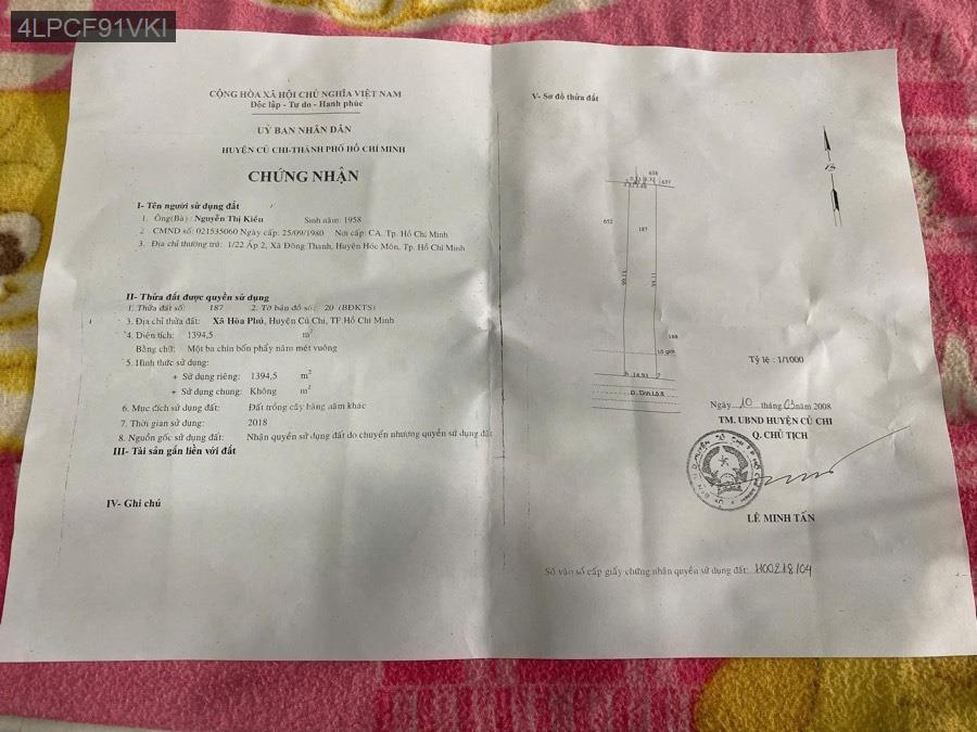 Bán lô đất mặt tiền TL8, Xã Hoà Phú, Củ Chi