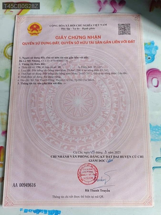 Bán nhà cấp 4 SHR mặt tiền đường Lê Thị Nghiên, Tân Thạnh Đông, Củ Chi - TL15