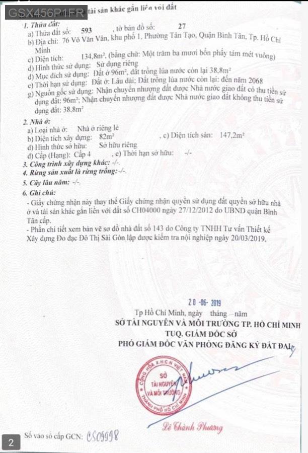 Bán nhà mặt tiền đường Võ Văn Vân, Phường Tân Tạo, Quận Bình Tân